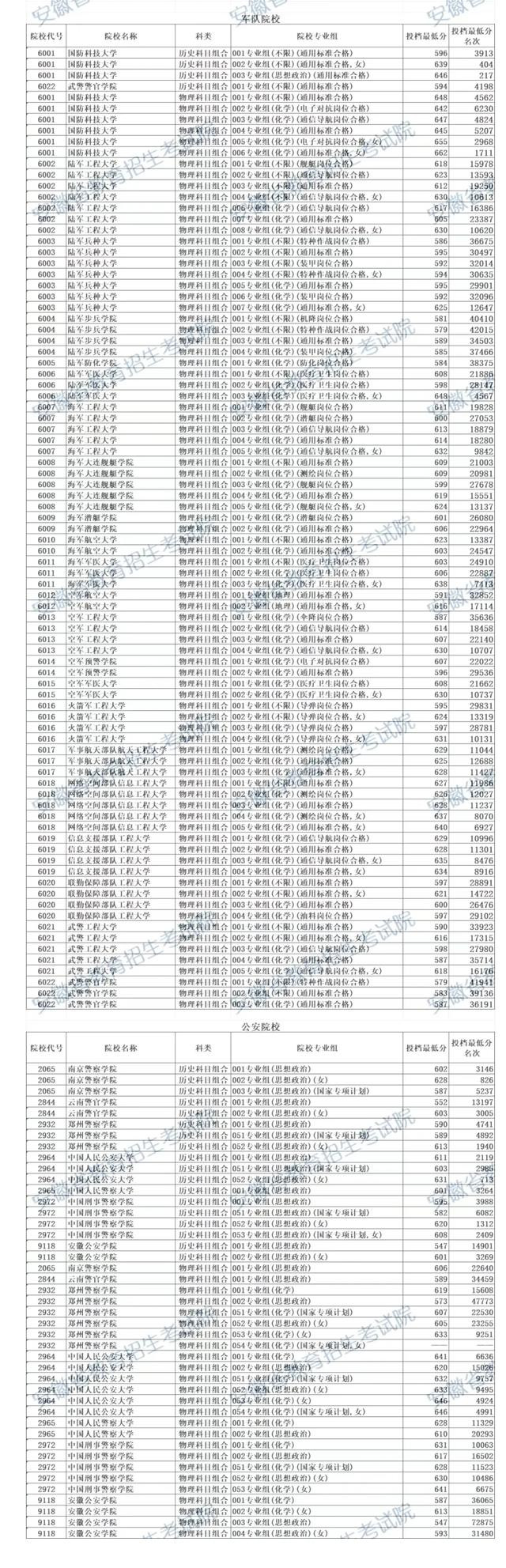 通过安徽省提前批投档线可以看到,今年无论是国家公费师范生 还是军校还是公安政法院校,最低投档线至少超过特控线30分以上,竞争越来越激烈了。