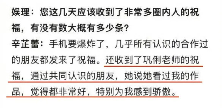 就连巩俐也通过朋友发来消息,说为辛芷蕾而感到骄傲。